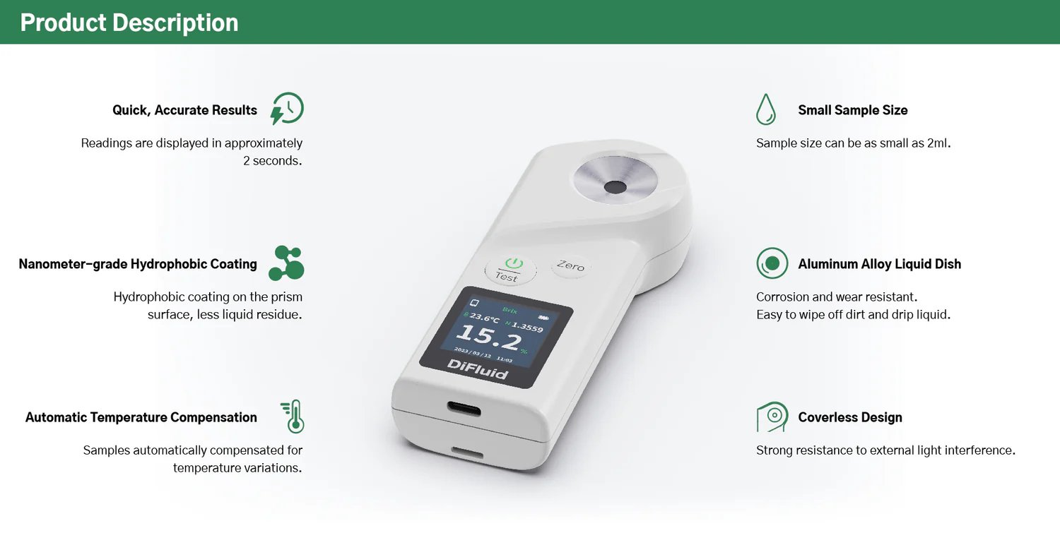 Highly recommended! I’d heard about the Difluid sugar refractometer brand for a while, and it was my trust in the brand that led me to purchase several units. The seller was very patient in answering my questions. The side data readings are stable, the app connects to my phone seamlessly, and it looks great. It’s easy to carry, comes with a protective case, and the build quality is excellent.